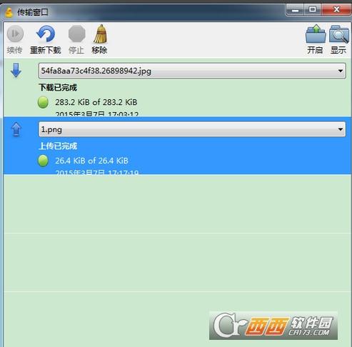之后会弹出传输窗口,传输完成即可关掉,这时可以看到文件已经上传成功